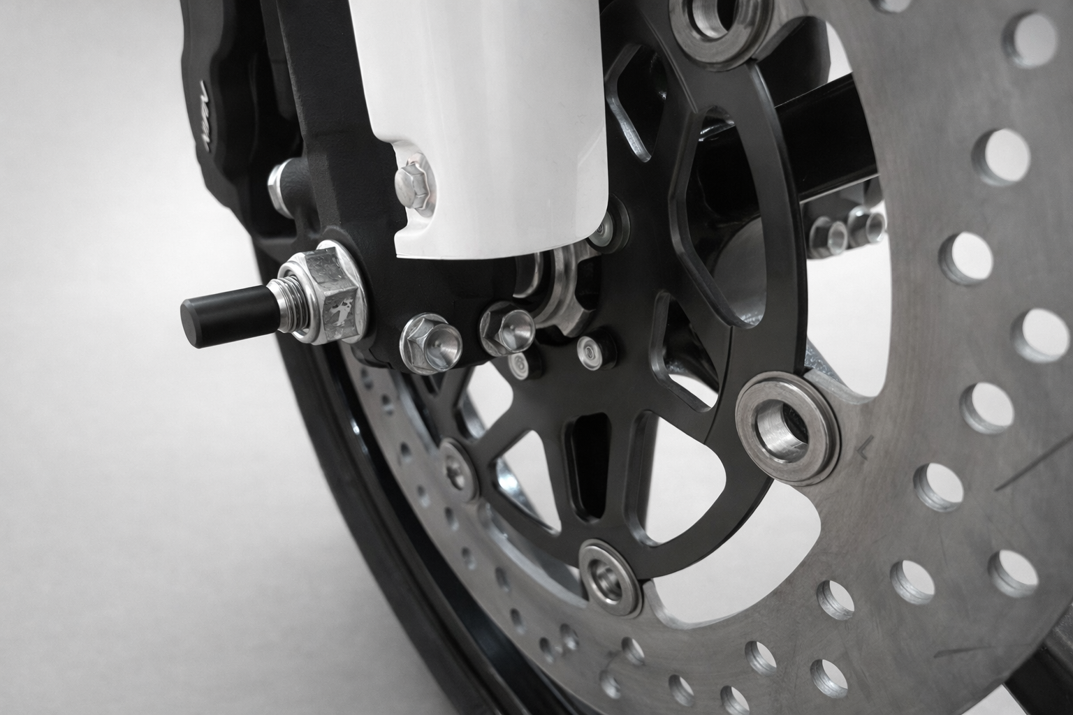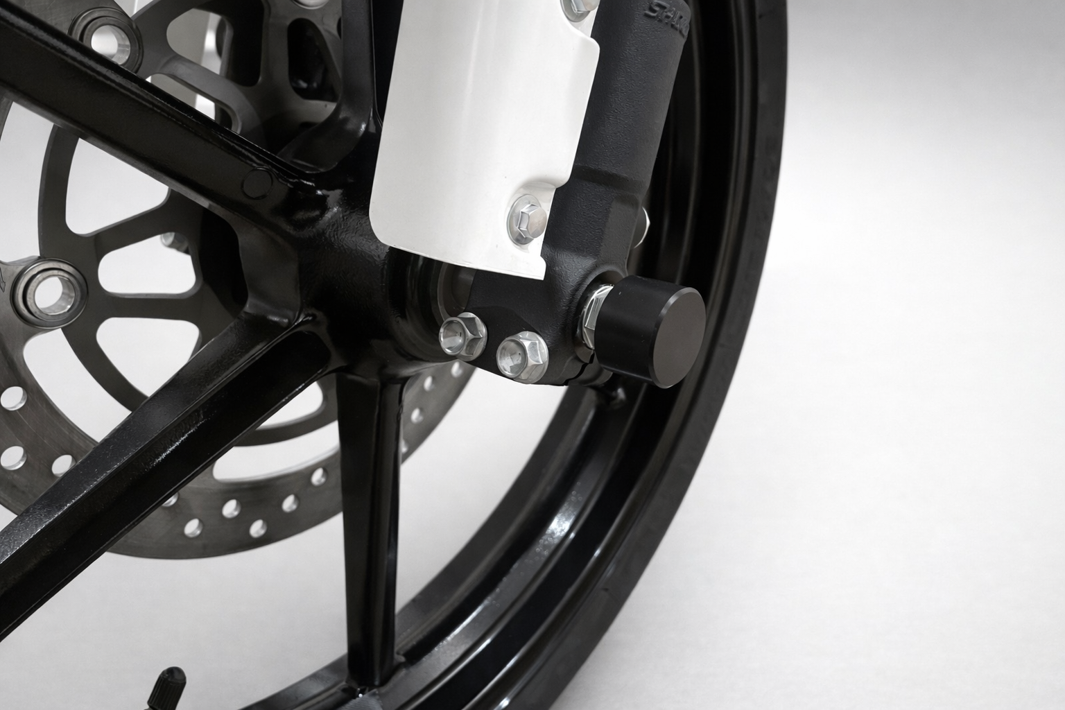 Die R-Line Vorderachsen-Protektoren schützen die Vorderradachse zuverlässig bei Stürzen im Rennbetrieb.