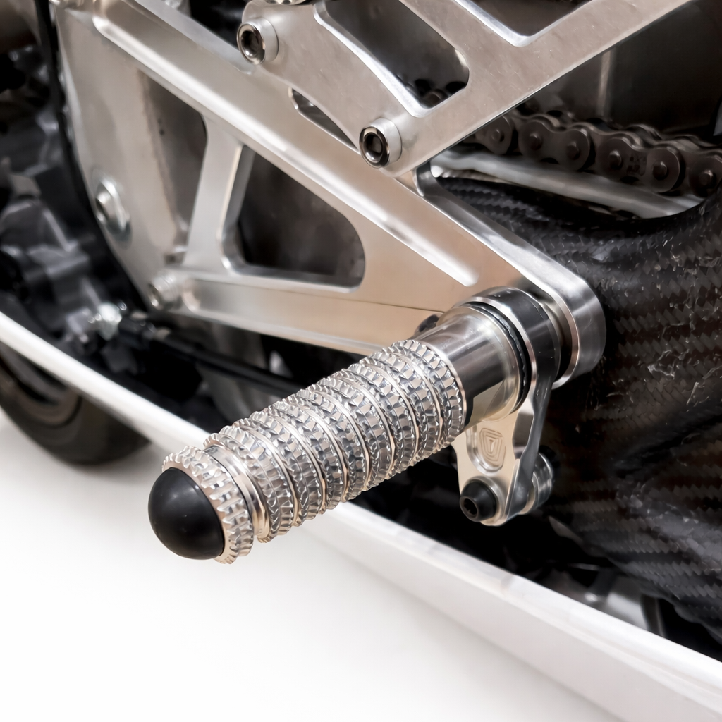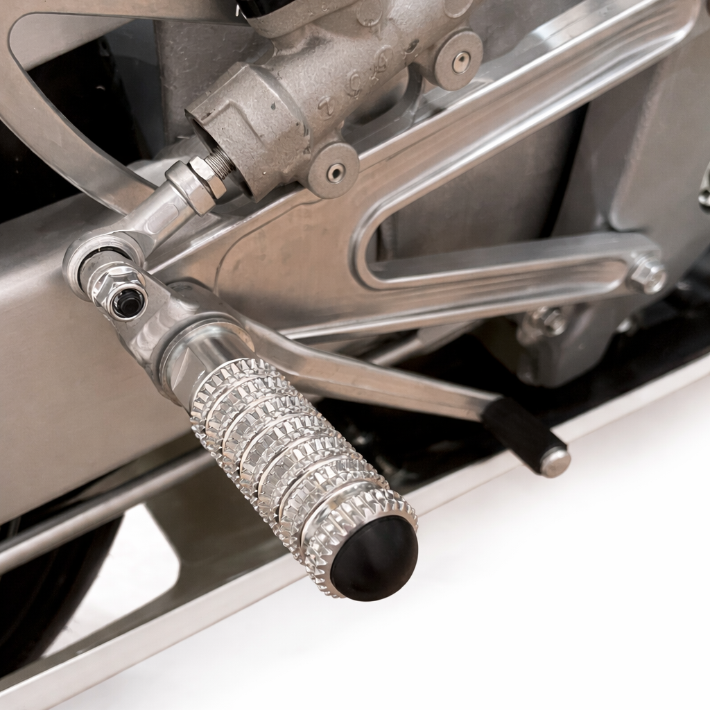 Die R-Line Fußraste wurde für den kompromisslosen Einsatz auf der Rennstrecke entwickelt.